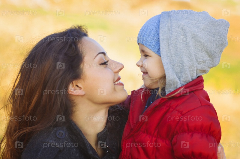 Счастливой мамой и девочку, ходить на пляж в осень
