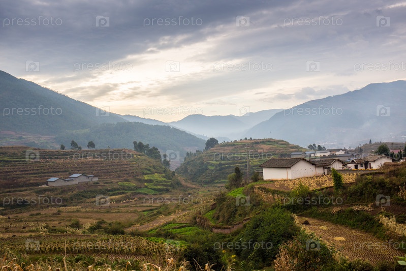 Сельский пейзаж с полями и дома