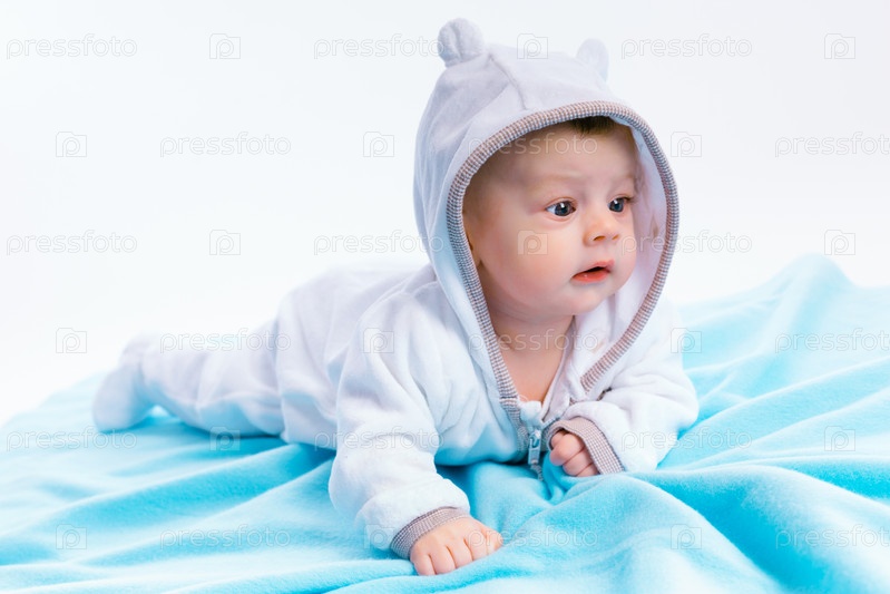 Ребенок на синее одеяло
