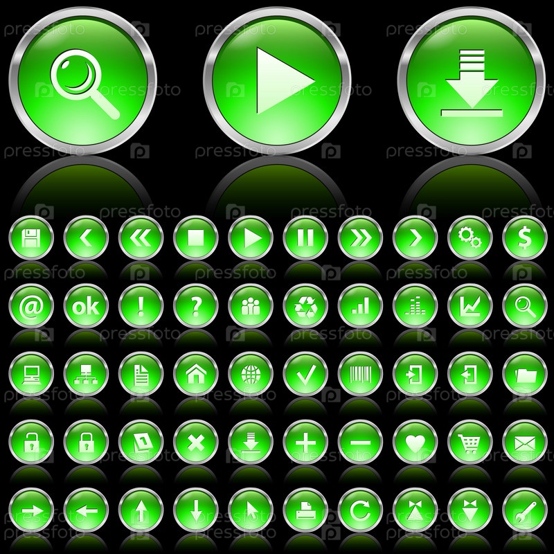 Набор зеленых глянцевых иконок на черном фоне