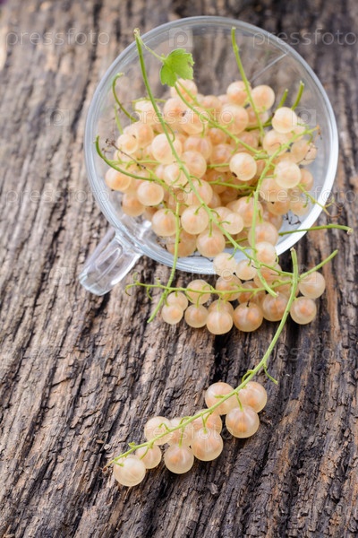 Смородина в прозрачные чашки на старый деревянный стол