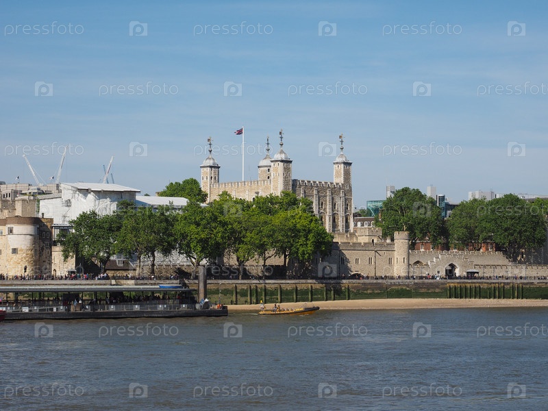 Лондонский Тауэр, видно из реки Темзы в Лондоне, Великобритания
