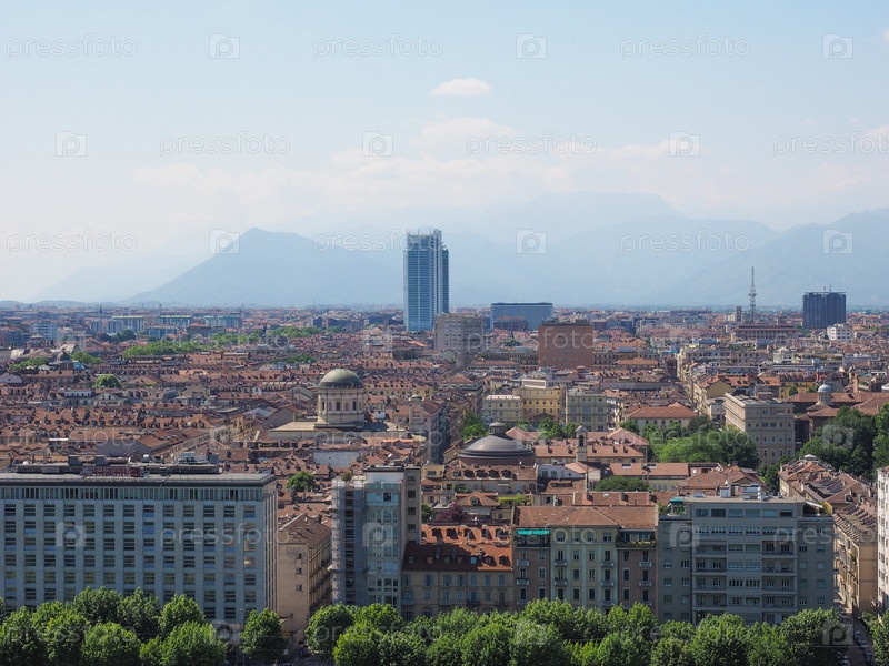 Аэрофотосъемка города Турин, Италия, видели с холма