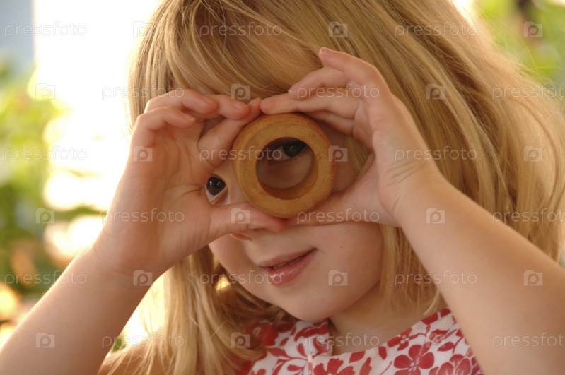 Девочка играет с круговой объект