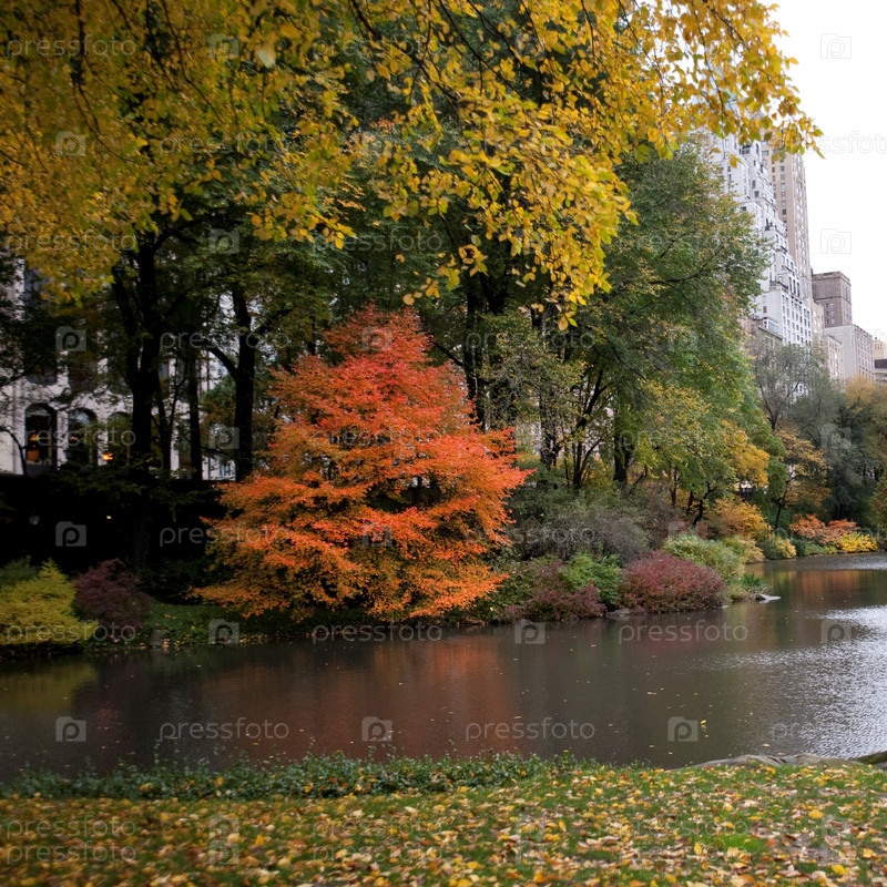 Осень в центральном парке на Манхэттене, Нью-Йорк, США