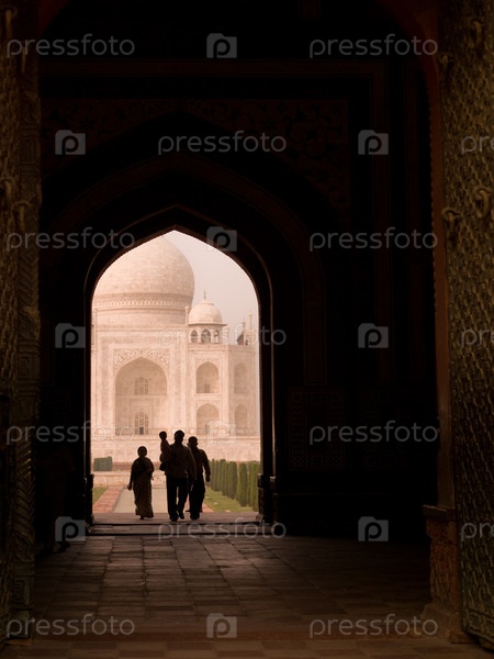 Люди в арку Тадж Махал, Агра, Индия