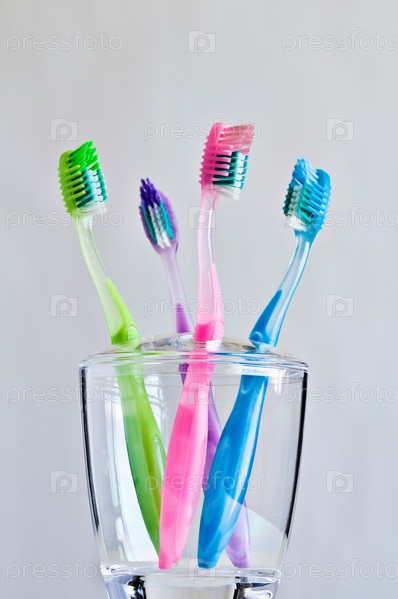 Четыре различных цветных зубные щетки