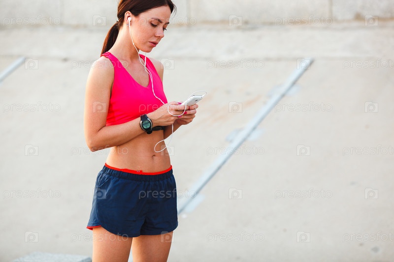 Женщина после пробежки слушает музыку