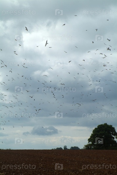 Чайки и вороны над распаханным полем