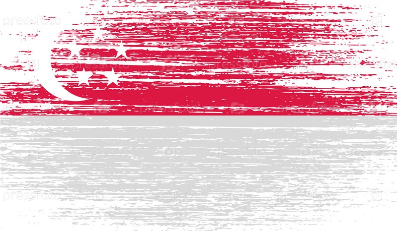 Флаг Республики Сингапур с старой текстуре. Вектор