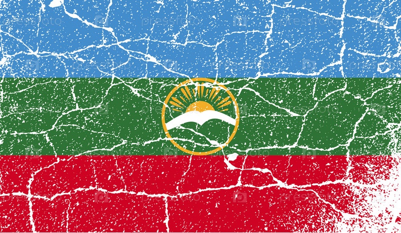 Флаг Республики Карачаево-Черкесия, Россия с старой текстуре. Вектор