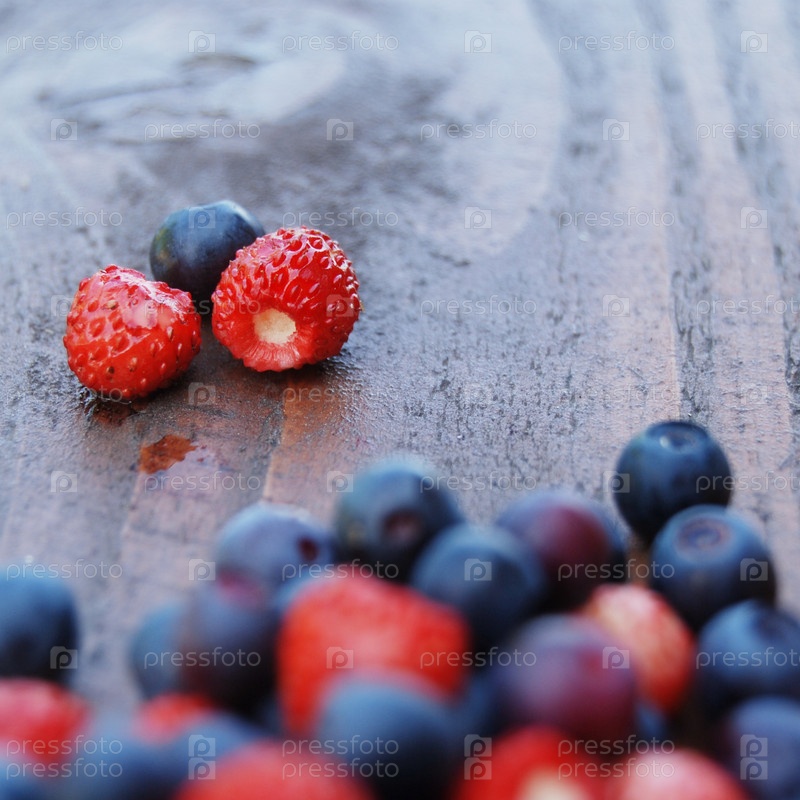Черника и земляника крупным планом