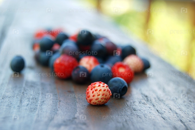 Черника и земляника крупным планом