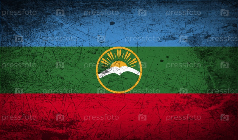 Флаг Республики Карачаево-Черкесия, Россия с старой текстуре. Вектор