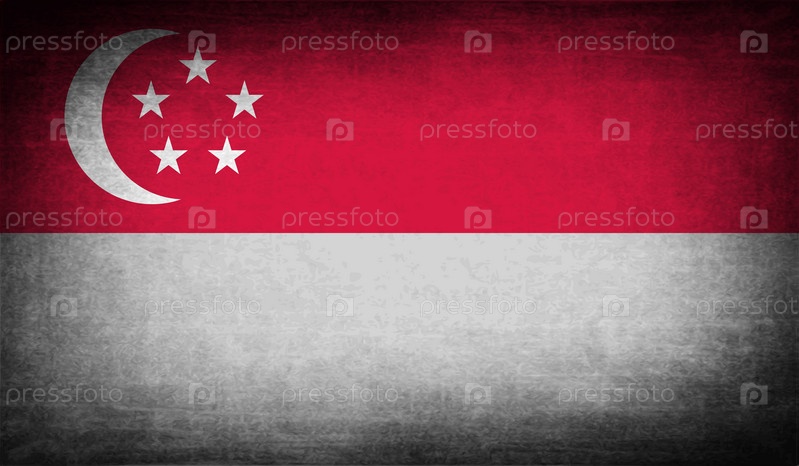 Флаг Республики Сингапур с старой текстуре. Вектор