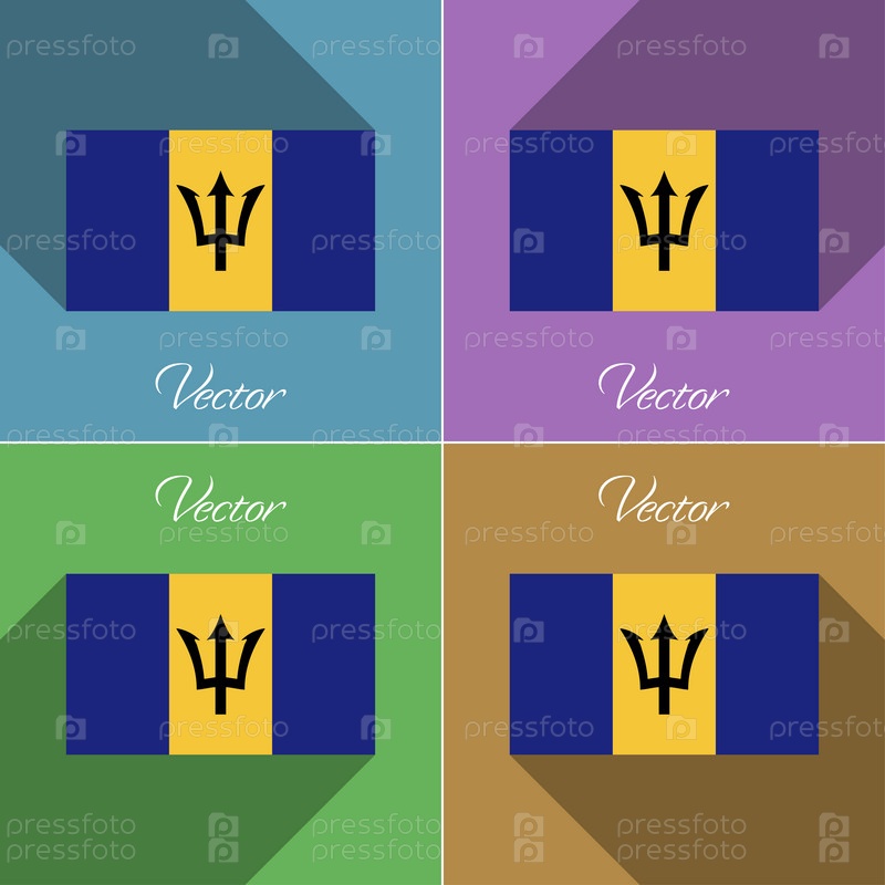 Флаги, Барбадос. Набор цветов плоский дизайн и длинные тени. Вектор