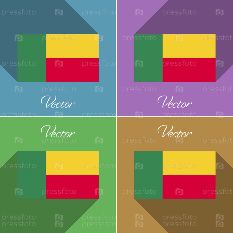 Флаги Бенина. Набор цветов плоский дизайн и длинные тени. Вектор