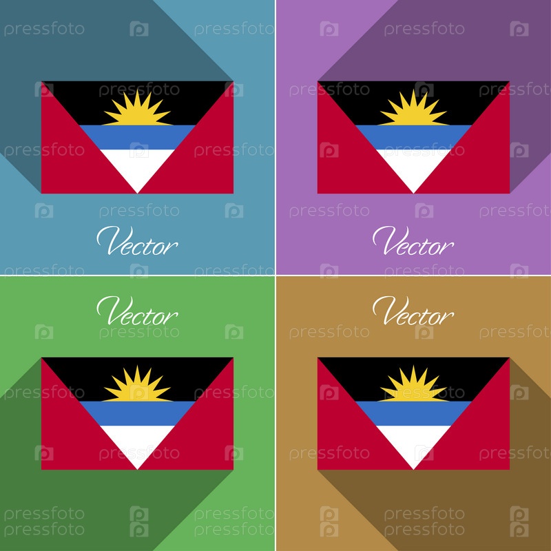Флаг Антигуа и Барбуда. Набор цветов плоский дизайн длинные тени. Вектор