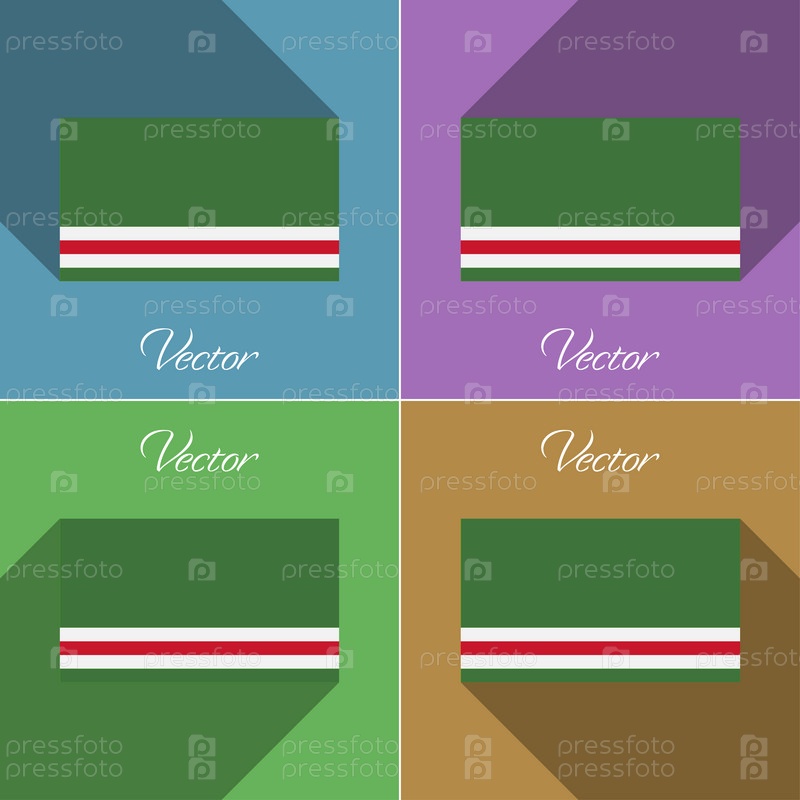 Флаги Чеченской Республики Ичкерия. Плоский дизайн набора цветов и длинные тени. Вектор