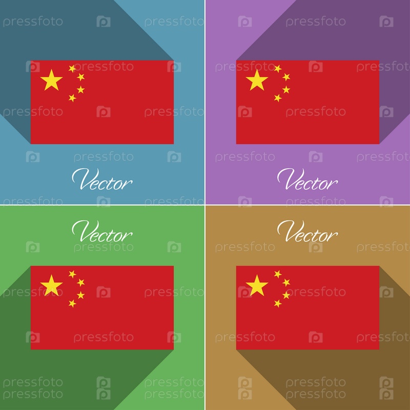 Флаги Китая. Набор цветов плоский дизайн и длинные тени. Вектор