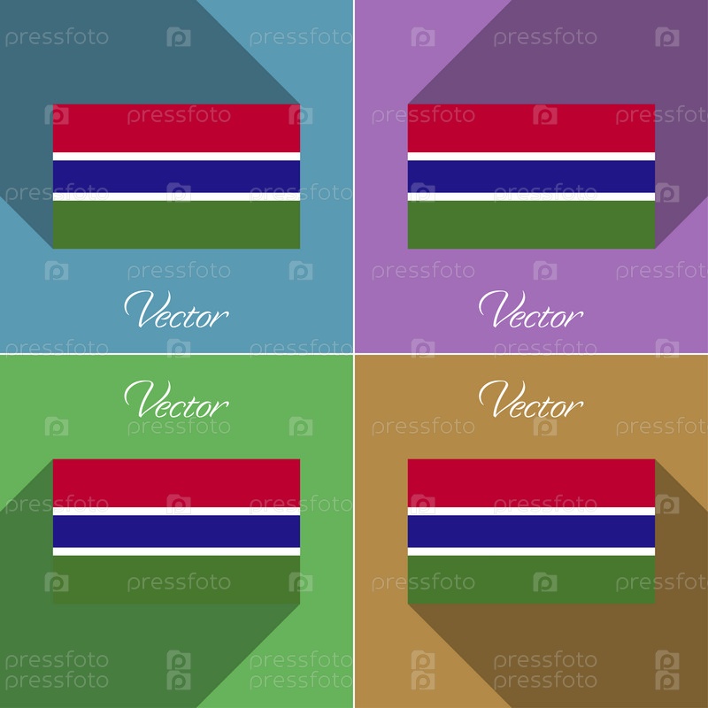 Флаги Гамбии. Набор цветов плоский дизайн и длинные тени. Вектор