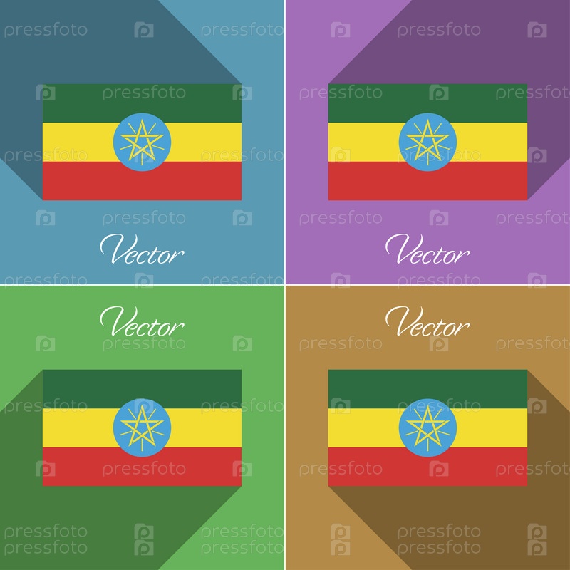 Флаг Эфиопии. Набор цветов плоский дизайн и длинные тени. Вектор