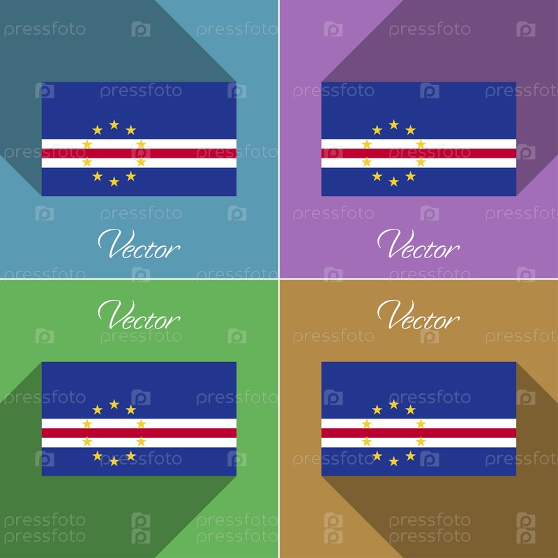 Флаги, Кабо-Верде. Набор цветов плоский дизайн и длинные тени. Вектор