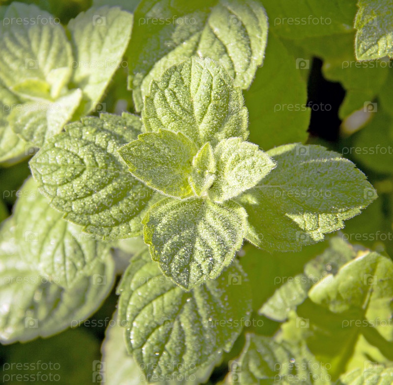 Мята перечная в капельках росы