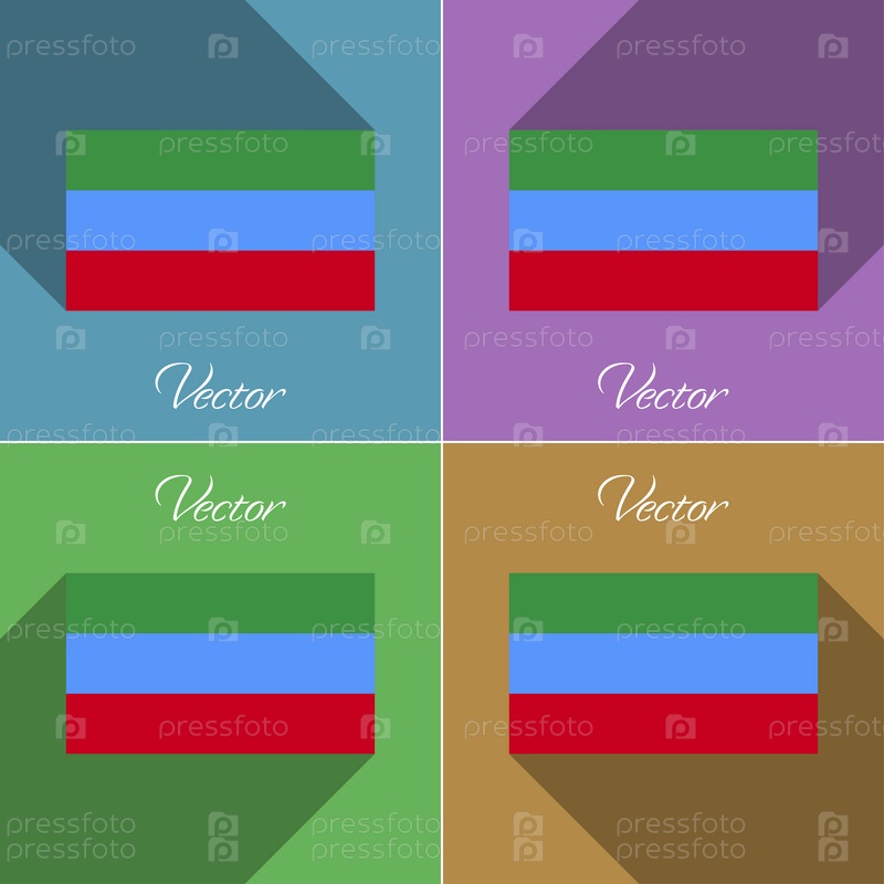 Флаги Дагестана. Набор цветов плоский дизайн и длинные тени. Вектор