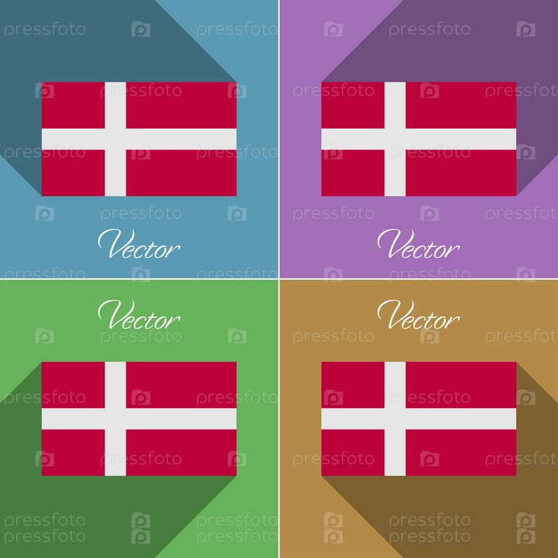 Флаг Дании. Набор цветов плоский дизайн и длинные тени. Вектор