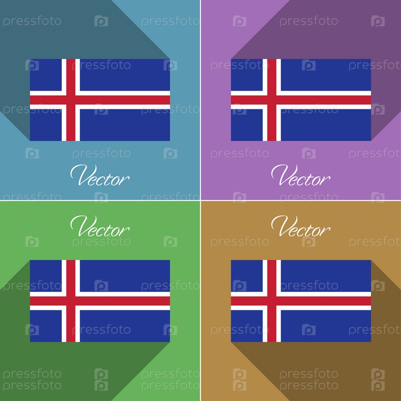 Флаги Исландии. Набор цветов плоский дизайн и длинные тени. Вектор