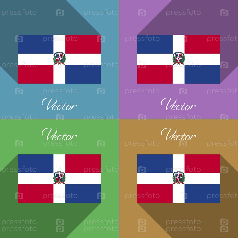 Флаги, Доминиканская Республика. Набор цветов плоский дизайн и длинные тени. Вектор