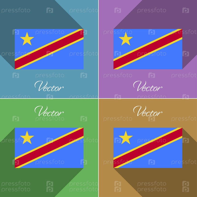 Флаг Демократической Республики Конго. Набор цветов плоский дизайн и длинные тени. Вектор