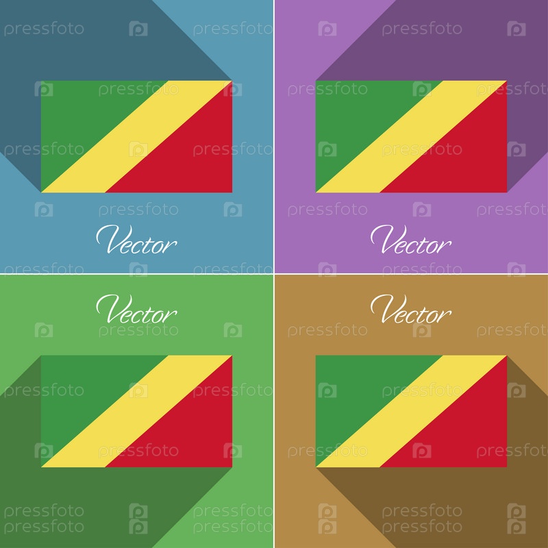 Республика Конго флаги. Набор цветов плоский дизайн и длинные тени. Вектор