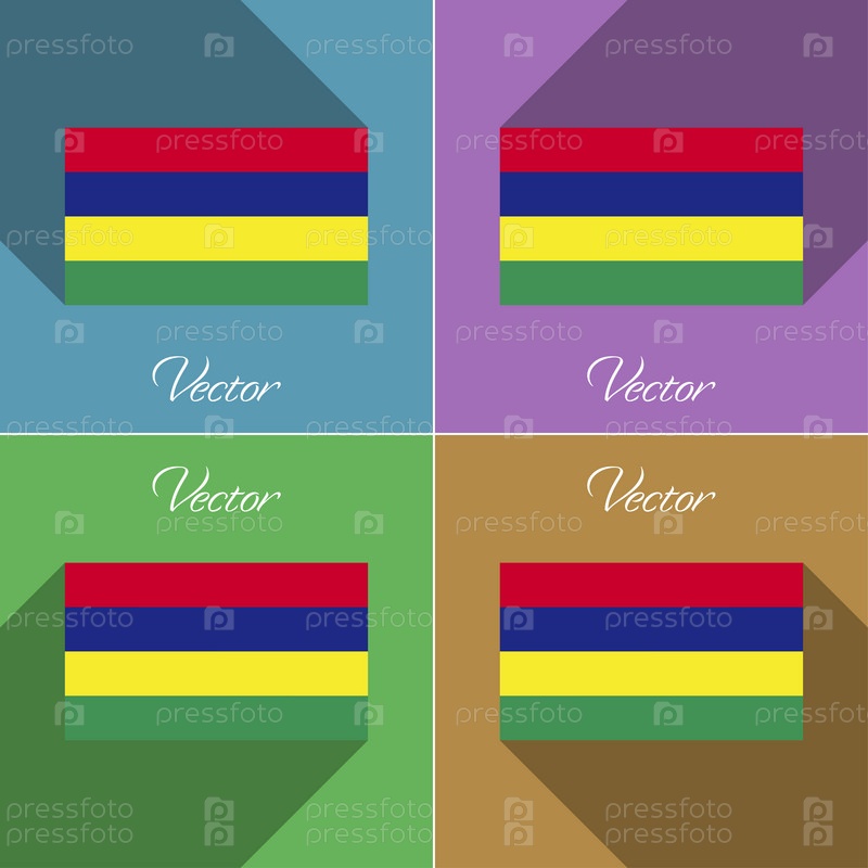Флаги, Маврикий. Набор цветов плоский дизайн и длинные тени. Вектор