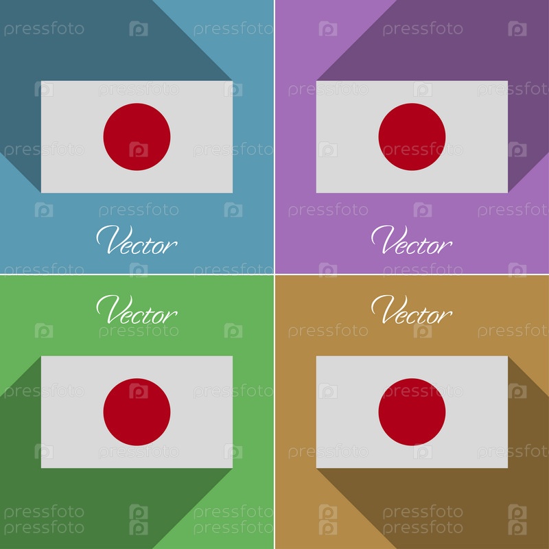 Флаги Японии. Набор цветов плоский дизайн и длинные тени. Вектор