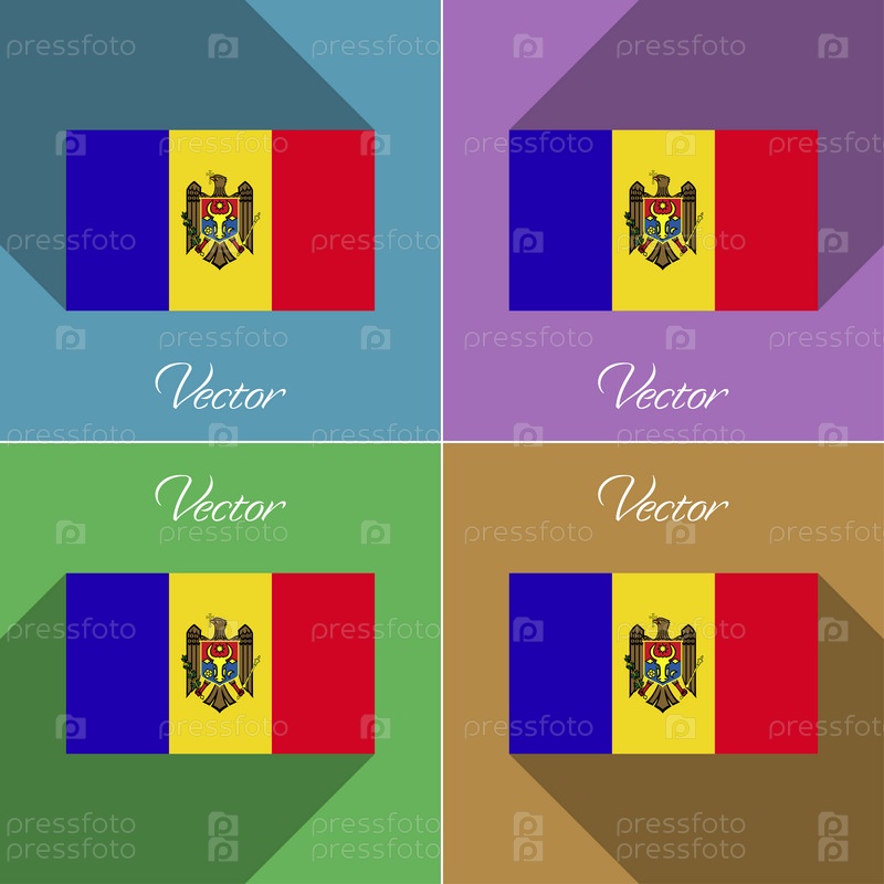 Флаги Молдовы. Набор цветов плоский дизайн и длинные тени. Вектор