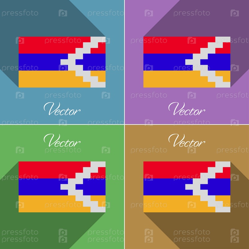 Флаги Карабахской Республики. Набор цветов плоский дизайн и длинные тени. Вектор