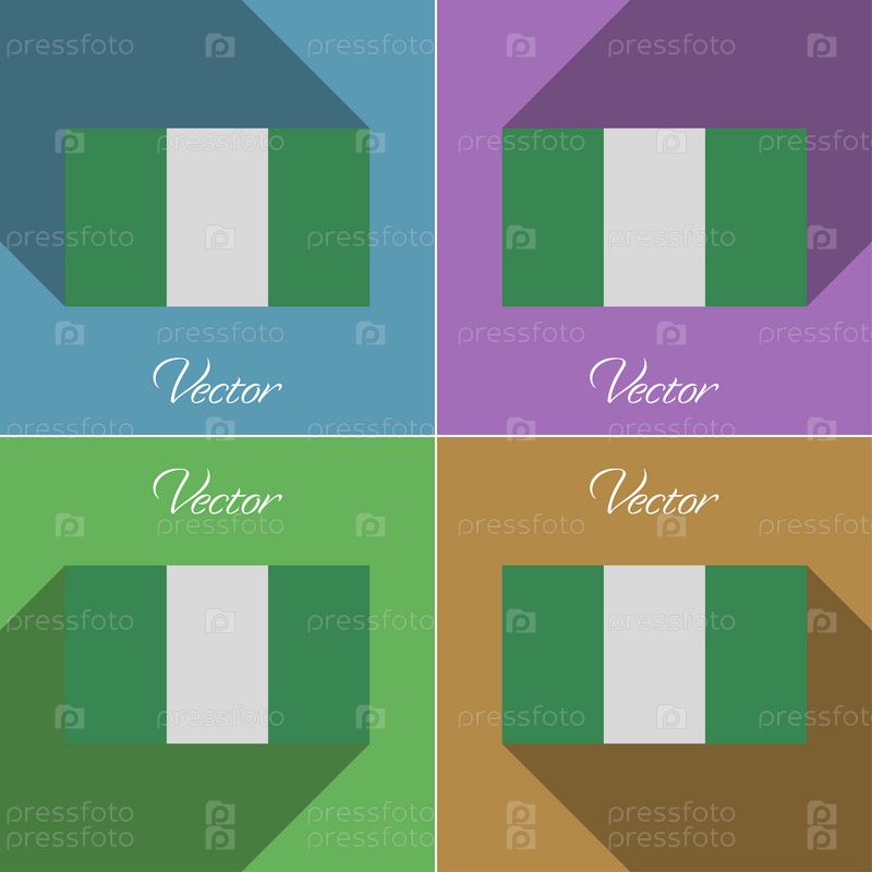 Флаги Нигерии. Набор цветов плоский дизайн и длинные тени. Вектор