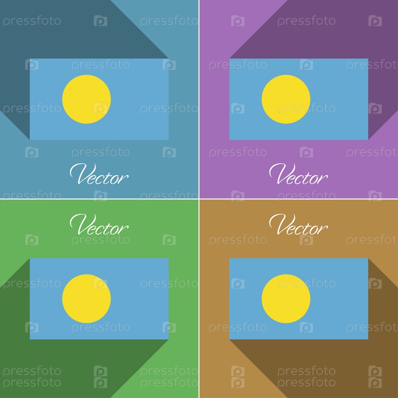Флаг Палау. Набор цветов плоский дизайн и длинные тени. Вектор