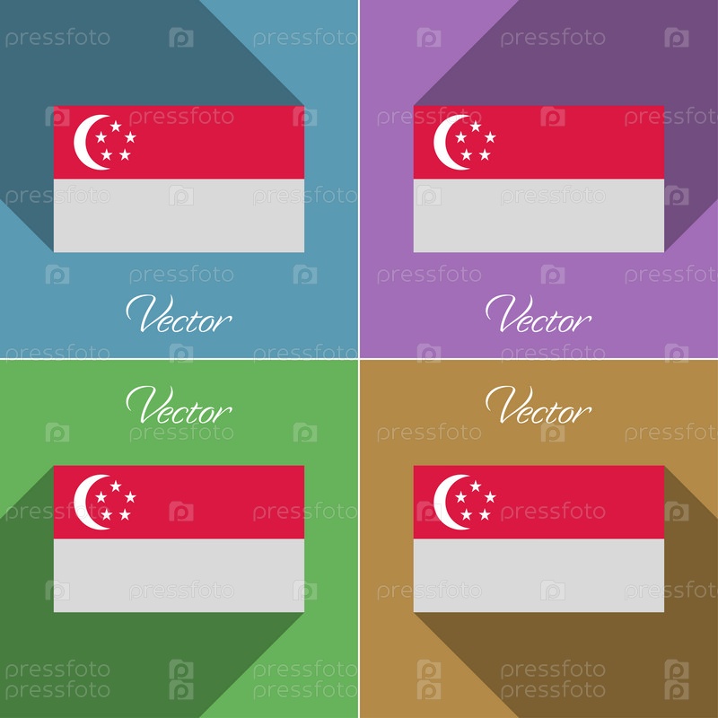 Флаг Сингапура. Набор цветов плоский дизайн и длинные тени. Вектор