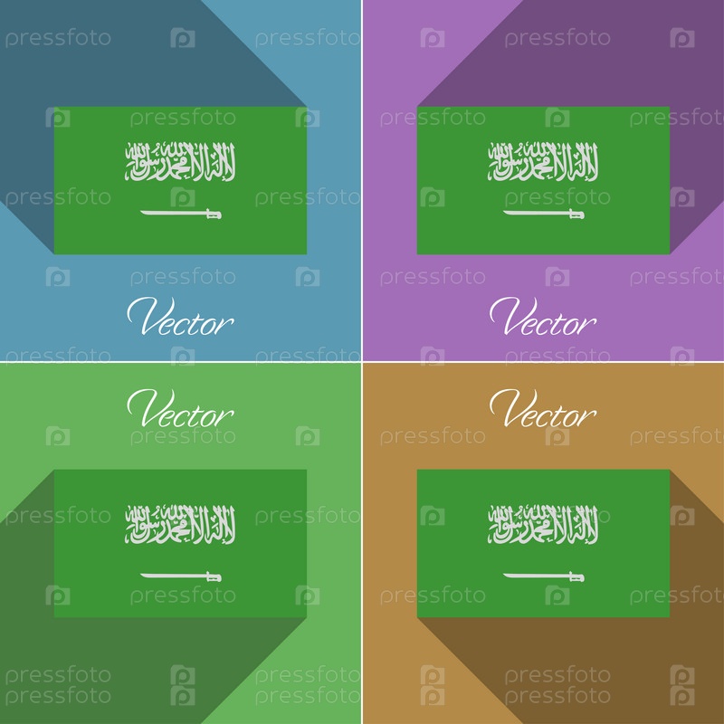Флаги, Саудовская Аравия. Набор цветов плоский дизайн и длинные тени. Вектор