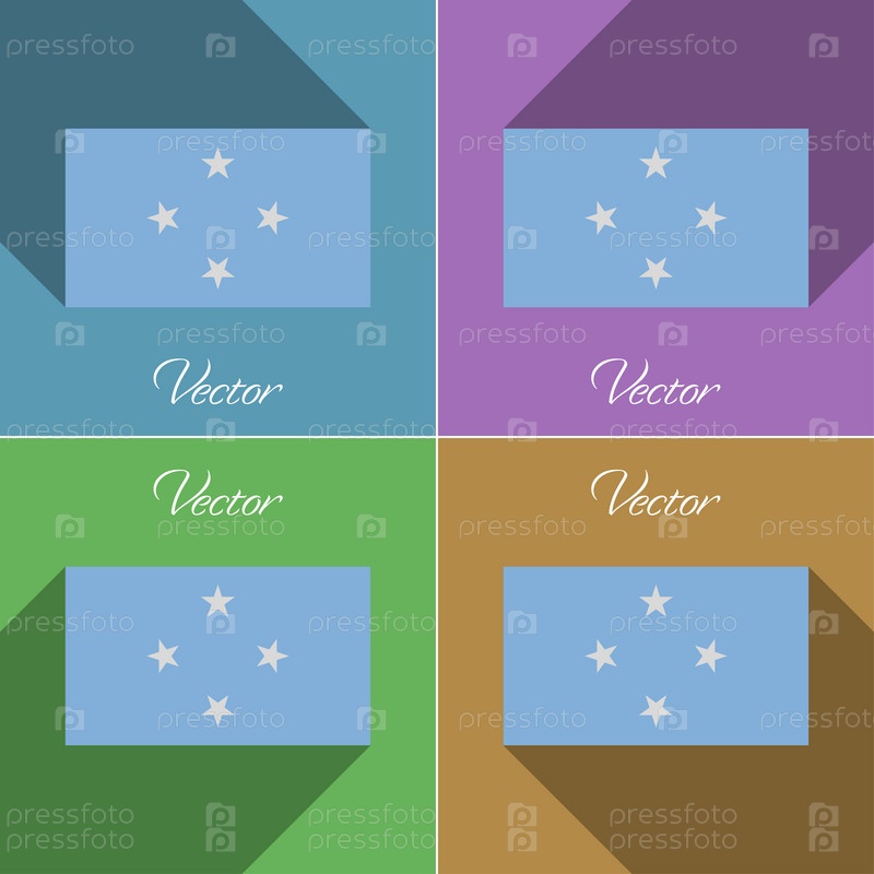 Флаги Микронезии. Набор цветов плоский дизайн и длинные тени. Вектор