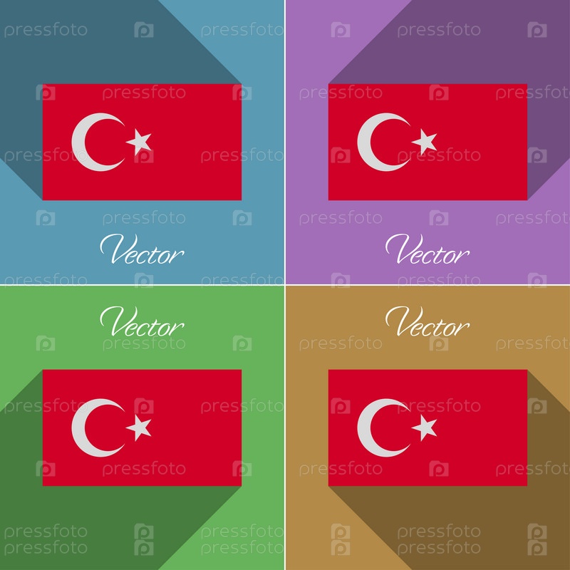Флаги Турции. Набор цветов плоский дизайн и длинные тени. Вектор