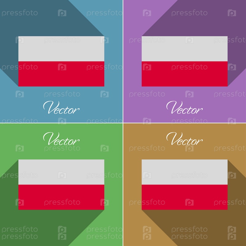 Флаги Польши. Набор цветов плоский дизайн и длинные тени. Вектор