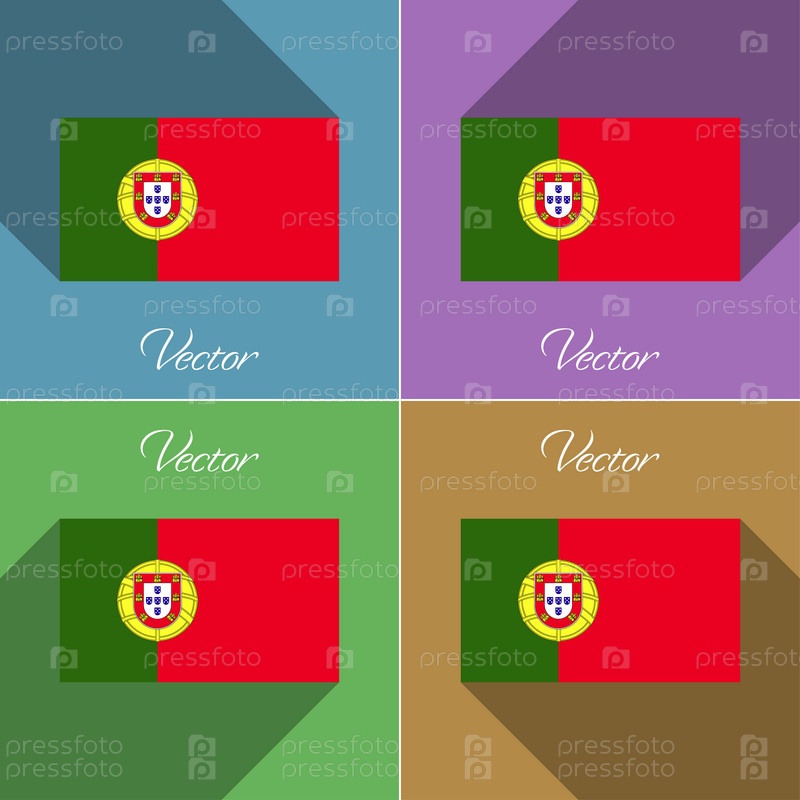 Флаги Португалии. Набор цветов плоский дизайн и длинные тени. Вектор