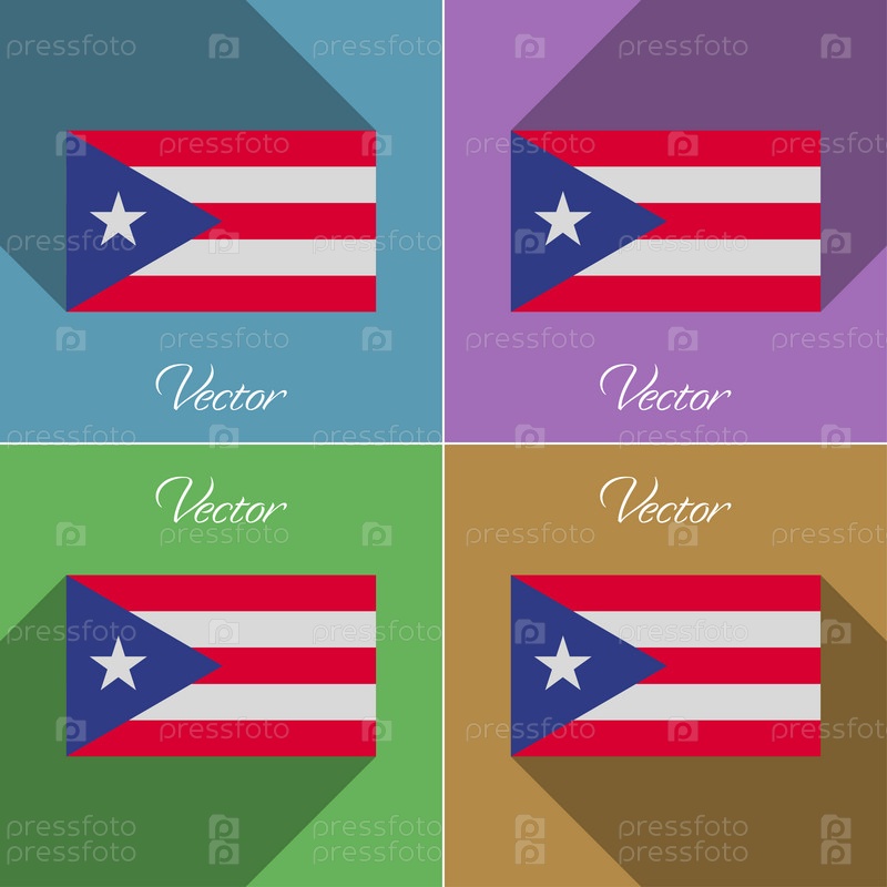 Флаги Пуэрто Рико. Набор цветов плоский дизайн и длинные тени. Вектор