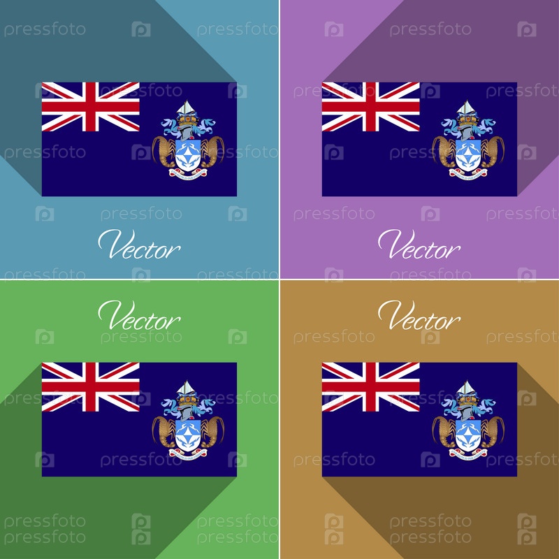 Флаги Тристан-да-Кунья. Набор цветов плоский дизайн и длинные тени. Вектор
