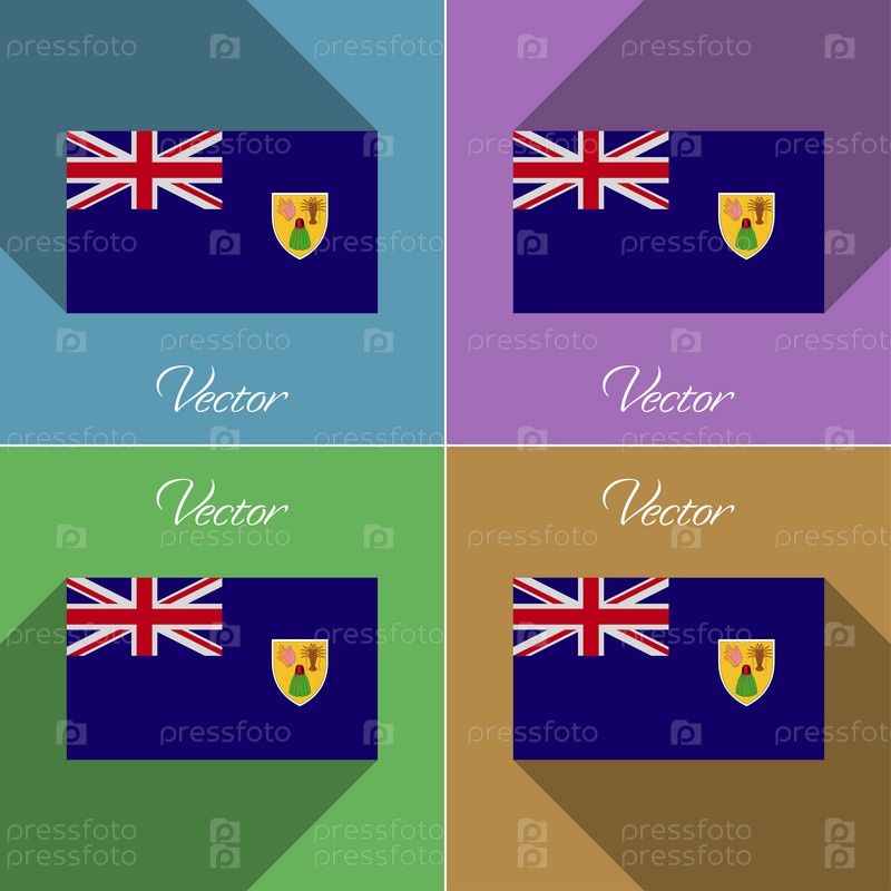 Флаги, Теркс и Кайкос. Набор цветов плоский дизайн длинные тени. Вектор