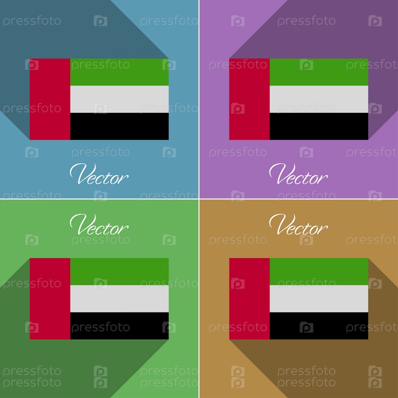 Флаги, Объединенные Арабские Эмираты. Набор цветов плоский дизайн и длинные тени. Вектор